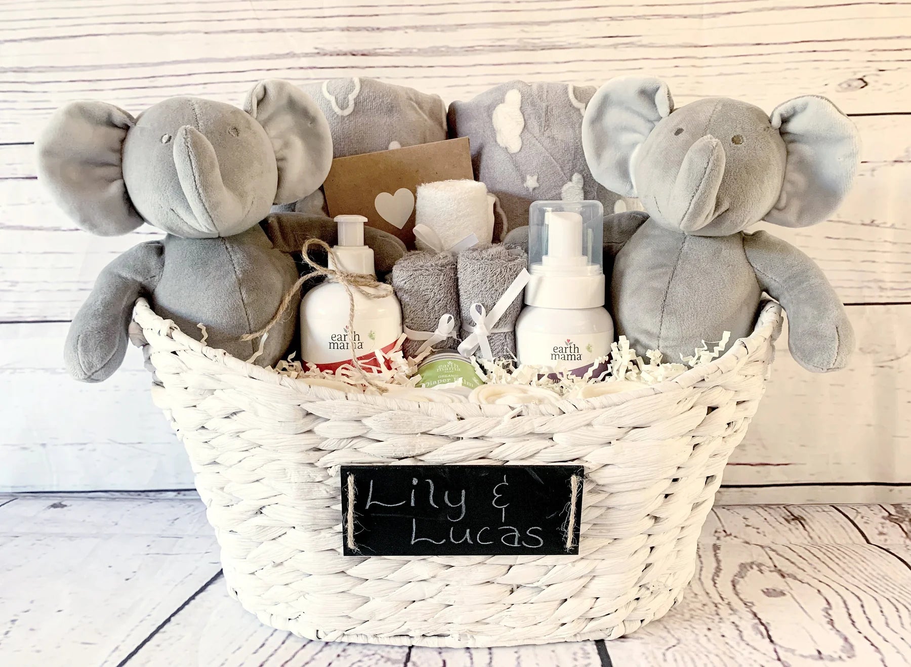 Twin baby showers, corporate newborn gifts, hospital visits, welcome-home surprises, and parents who love organic, eco-friendly, and beautifully packaged baby gifts.