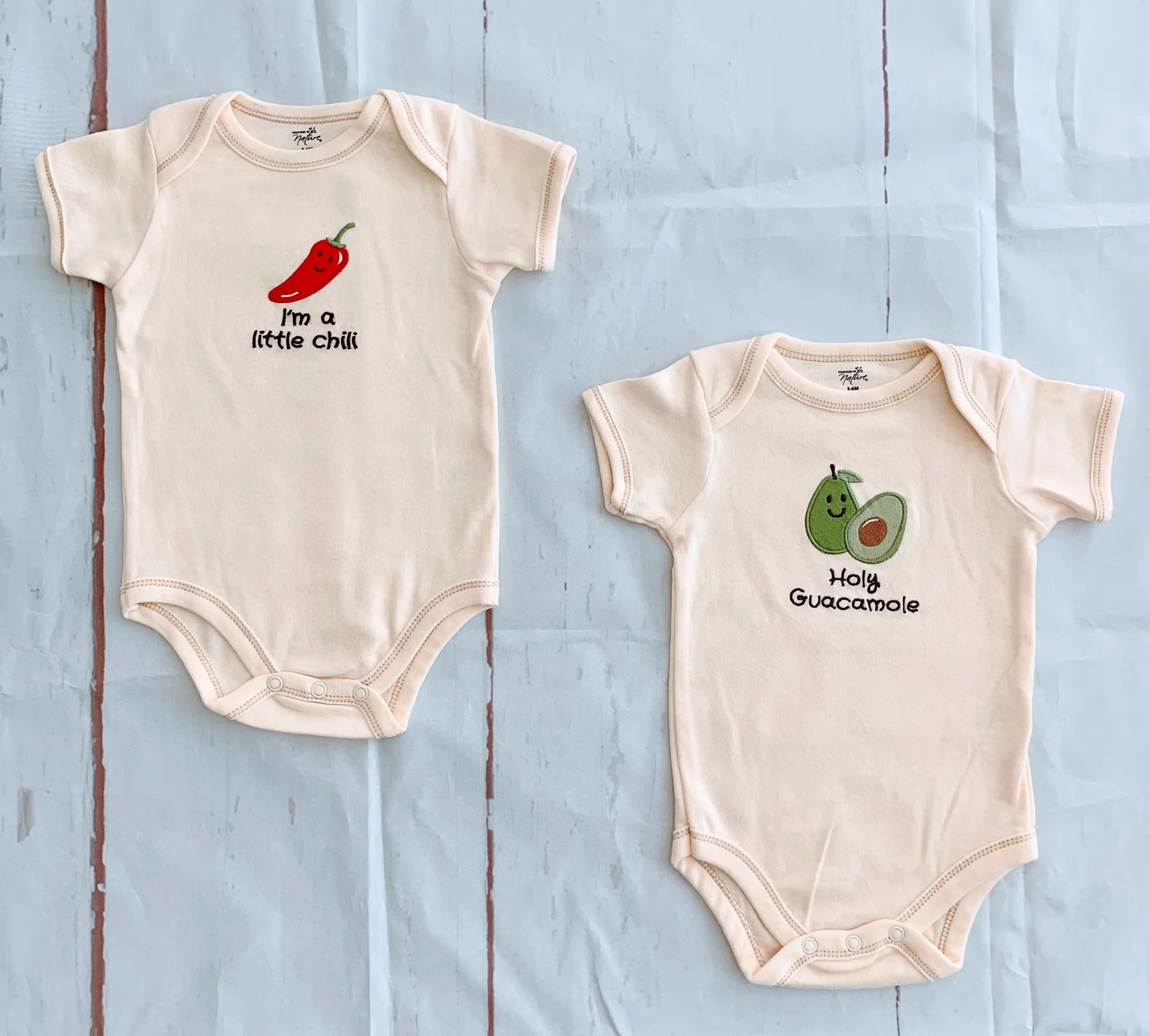 • ๐Ÿฝ๏ธ Two unisex โ€œFoodieโ€ organic cotton bodysuits, 3โ€“6 months