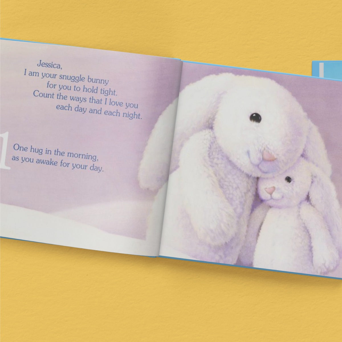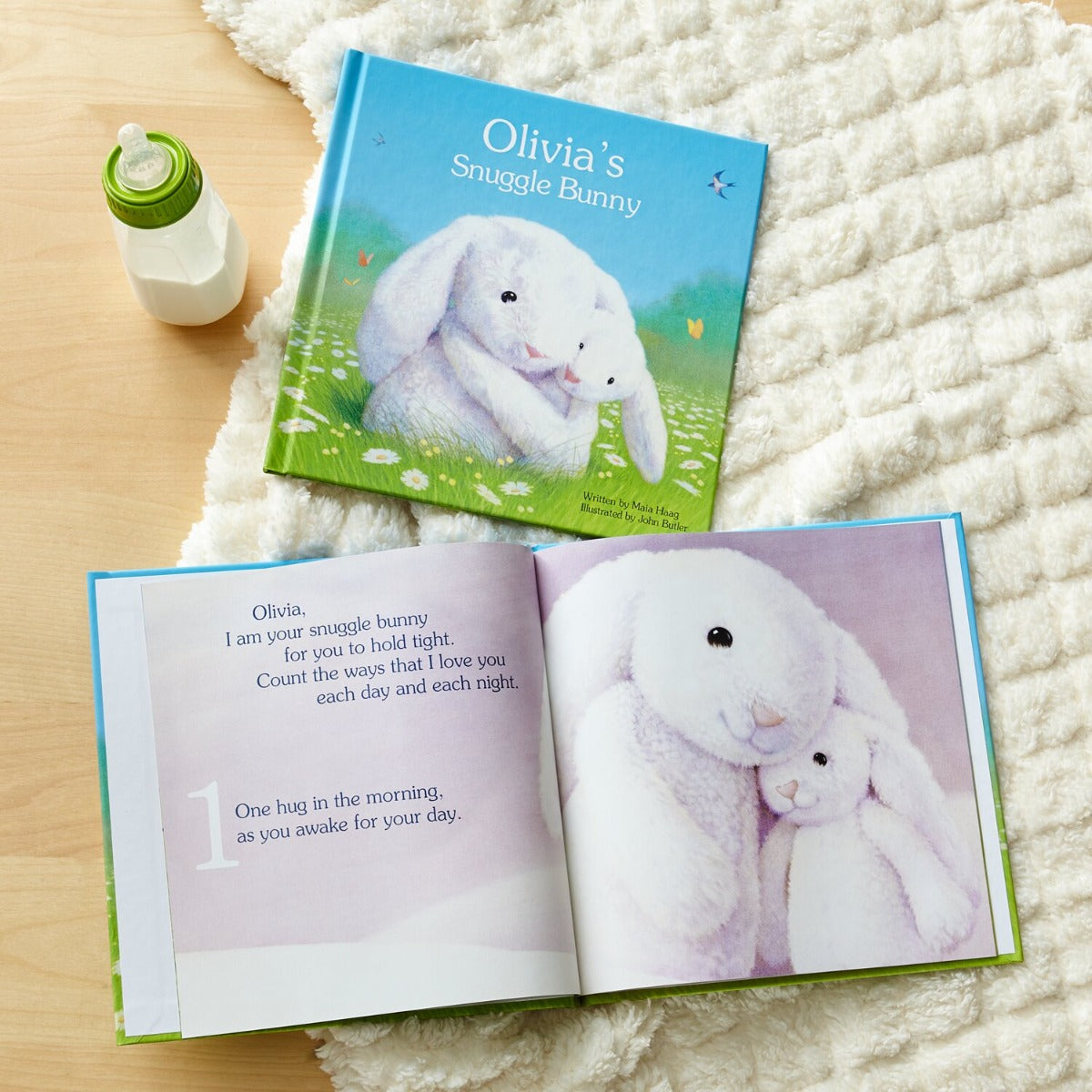 Wrap a little one in love with this highly personalized keepsake gift they’ll treasure for years. Our Snuggle Bunny Love & Counting Personalized Book + Plush Gift Set pairs a sweet, custom children’s book with an irresistibly cuddly bunny for story time snuggles and comforting play.