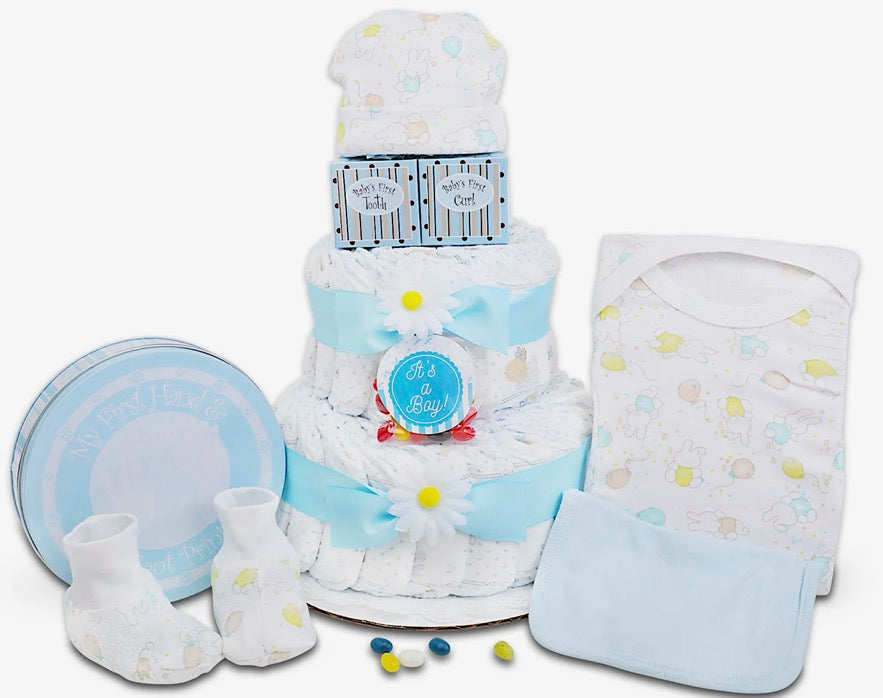 Celebrate the arrival of a little one with a gift that’s both adorable and useful! Our Sweet Beginnings Keepsake Diaper Cake is a show-stopping baby shower centerpiece packed with essentials every new parent will love — all wrapped up in a beautifully designed, ready-to-gift display.